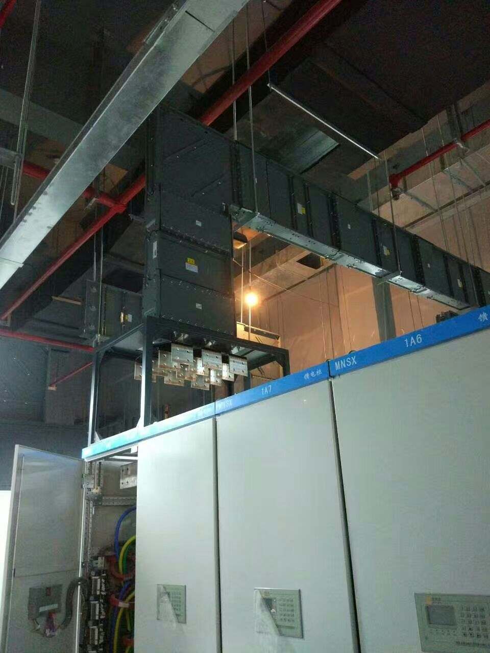 橋架上的光纜足有手臂粗細